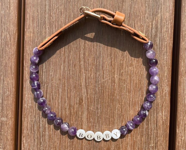 Mit meinen handgefertigten Heilsteinketten schenkst Du deinem Hund nicht nur ein schönes Accessoire, sondern auch energetische Unterstützung, die ihn im Alltag begleitet – ob zur Beruhigung, zum Schutz oder einfach als Zeichen eurer tiefen Verbindung.