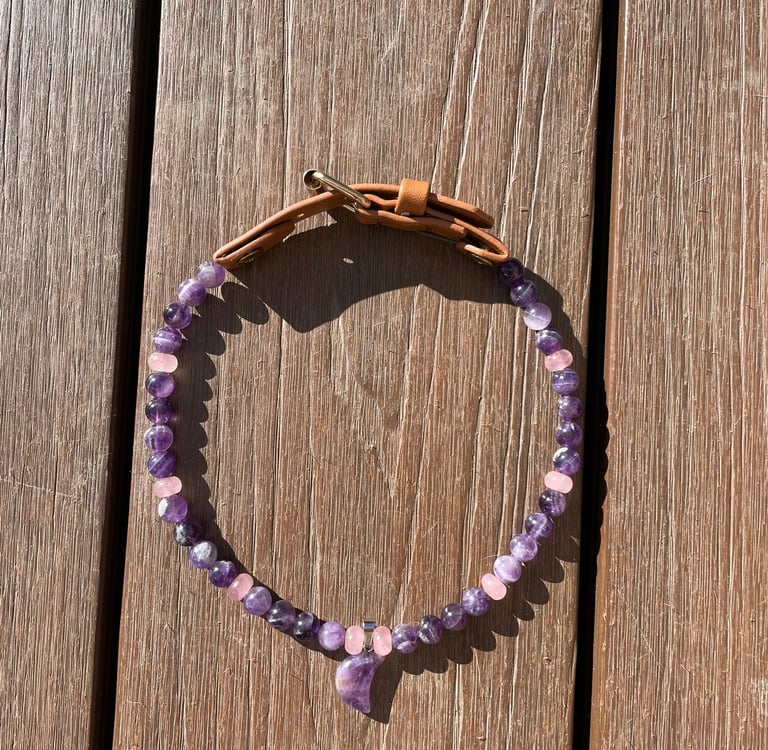 Mit meinen handgefertigten Heilsteinketten schenkst Du deinem Hund nicht nur ein schönes Accessoire, sondern auch energetische Unterstützung, die ihn im Alltag begleitet – ob zur Beruhigung, zum Schutz oder einfach als Zeichen eurer tiefen Verbindung.